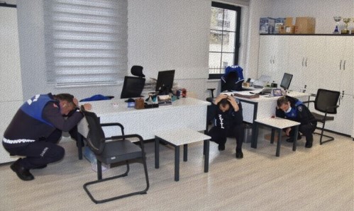 Yapılan uyarı ile belediye personeli bulundukları yerlerde “çök-kapan-tutun” yöntemini uyguladı.
