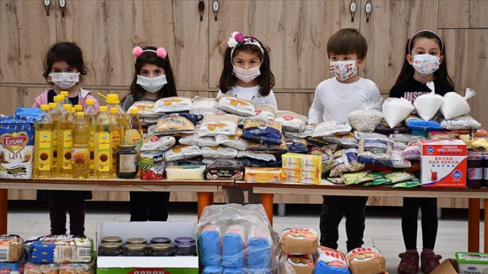 Minik yürekler, öğretmenleriyle paketledikleri gıda kolilerinin önemli bir kısmını, okulun bulunduğu mahalledeki ihtiyaç sahiplerine teslim etti.