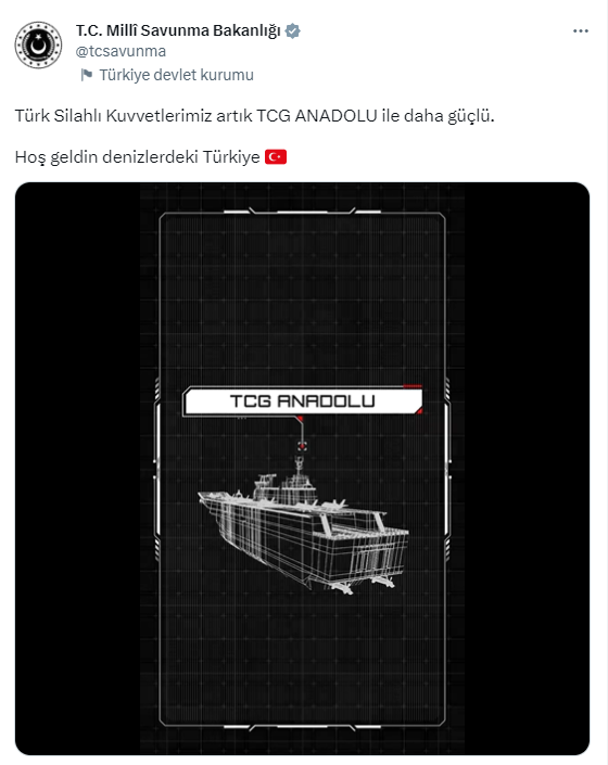 “Türk Silahlı Kuvvetlerimiz artık TCG Anadolu ile daha güçlü. Beğenilen geldin denizlerdeki Türkiye.”