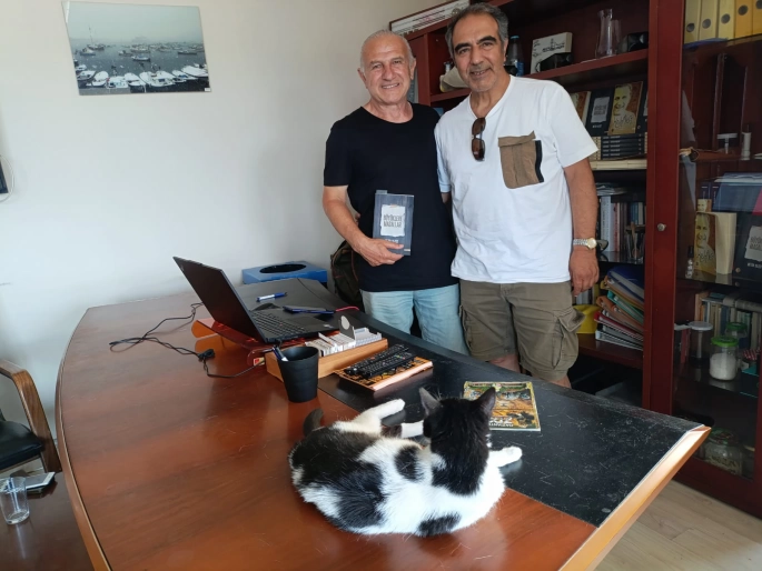 Yazıcı ziyaret kapsamında ‘Büyüklere Masallar’ adlı deneme kitabını Erel’e imzalayıp takdim etti.