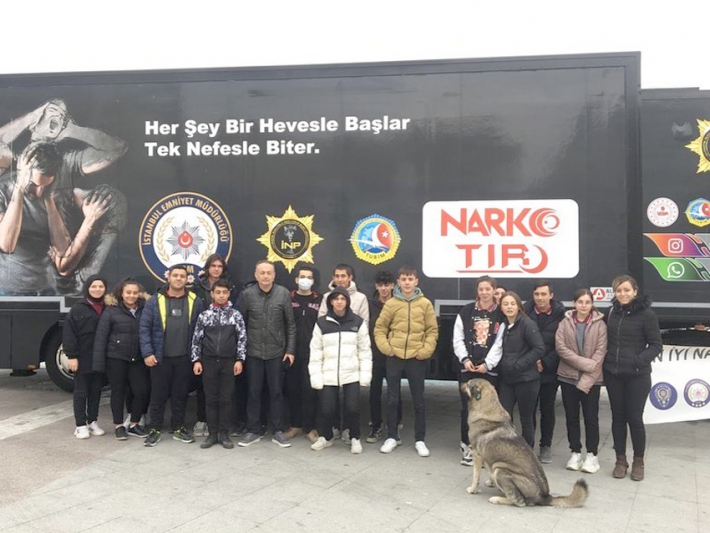 Necip Sarıbekir Mesleki ve Teknik Anadolu Lisesi öğrencileri, Narko Tır’ı ziyaret ederek uyuşturucunun etkileri konusunda bilgi aldı.