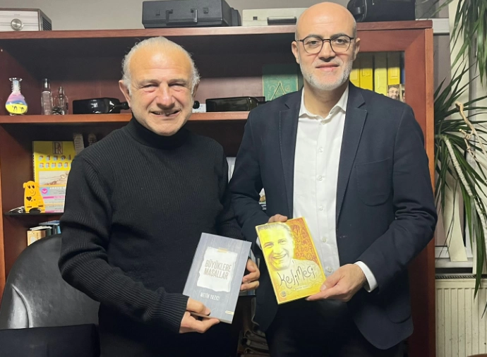 Sohbetin ardından Yazıcı, ‘Kelimeci’ adlı şiir kitabını ve ‘Büyüklere Masallar’ deneme kitabını Sincanlı’ya imzaladı.