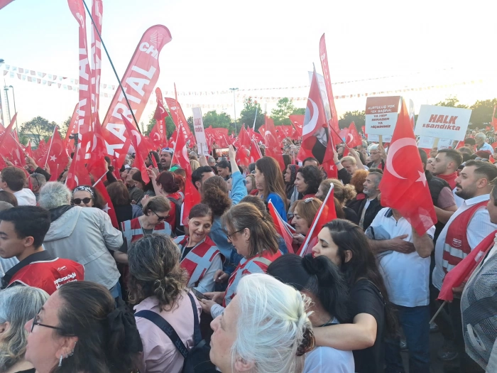 - Bu meydan, bu enerjisini 15 milyonu geçen, 20 milyona doğru yürüyen imzalarda, ilk hedef 20 milyonu tutturup, 28 milyona doğru yürümek için bu meydan görev almaya hazır mı? İlçeden stantlardan boş imza föylerini alıp kapı kapı gezmeye, imza vermeyenleri ikna etmeye, gidilemeyen yerlere gitmeye, imzaları tamamlamaya hazır mıyız? 20 milyonuncu imzayı notere tespit ettirdikten sonra, 8 milyon kalan imzayı teker teker geriye sayacağız. İmzalar bize emanet, Mustafa Kemal Atatürk’ün partisine emanet. Onu kimseye vermeyiz. Sadece notere tespit için göstereceğiz. O imzalar herkesin onuru olarak Cumhuriyet Halk Partisi’nde saklanacak. Şimdi buradan hep birlikte Silivri’ye doğru sesimizi duyuracak kadar gür bir sesle seslenelim. Ey Erdoğan, ben milletim, ben milli iradeyim. Ben ne dersem o olur. Adayımı bırak, sandığı getir. Adayımı yanımda, sandığı önümde istiyorum. Bu sandık sizin inancınızla, kararlılığınızla, coşkunuzla, cesaretinizle ya gelecek ya gelecek."