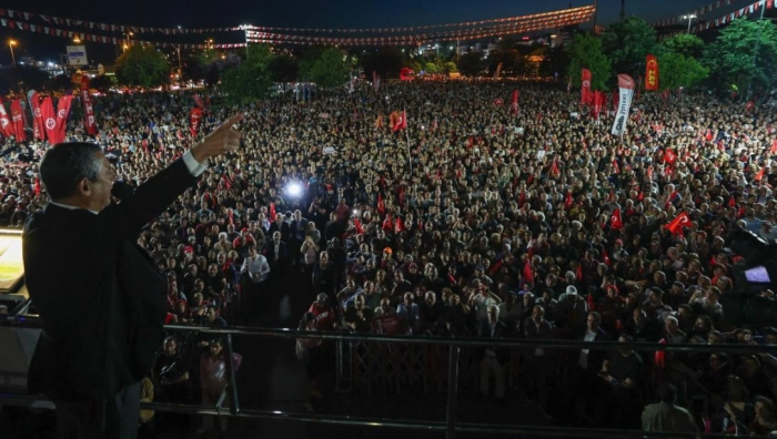 - Merkez Bankası 60 milyar dolar rezerv yaktı bu uğurda. Bu para, kişi başına 27 bin TL. Bu para, dün gece doğan kundaktaki bebekten de ölüm döşeğindeki hastadan da, bu meydandaki herkesten de, 86 milyondan ayrı ayrı çıktı. Emeklilere 14 bin değil 30 bin TL maaş vermek, bunu 10 yıl boyunca yapmak mümkün bu parayla. Çiftçilerin bütün borçlarını silmek, bir o kadar da üstüne para vermek mümkün bu parayla. Emekliye, işçiye, çiftçiye, memura bulunamayan parayı Ekrem Başkanı hapiste tutmak için harcayanlara şunu söylüyoruz. Korkunun ecele faydası yok, siz gideceksiniz, Türkiye'nin yeni cumhurbaşkanı Ekrem İmamoğlu olacak.