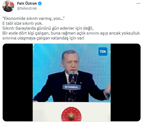 Öztrak Twitter hesabından Cumhurbaşkanı Recep Tayyip Erdoğan'ın konuşmasını paylaşarak şunları söyledi: