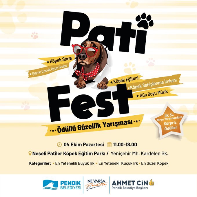 İlk 3’e Giren Yarışmacılara Sürpriz Ödüller olacaktır. 04 Ekim Pazartesi günü Neşeli Patiler Köpek Eğitim Parkı / Yenişehir Mh. Kardelen Sk. saat 11.00 – 18.00 gerçekleştirilecek.