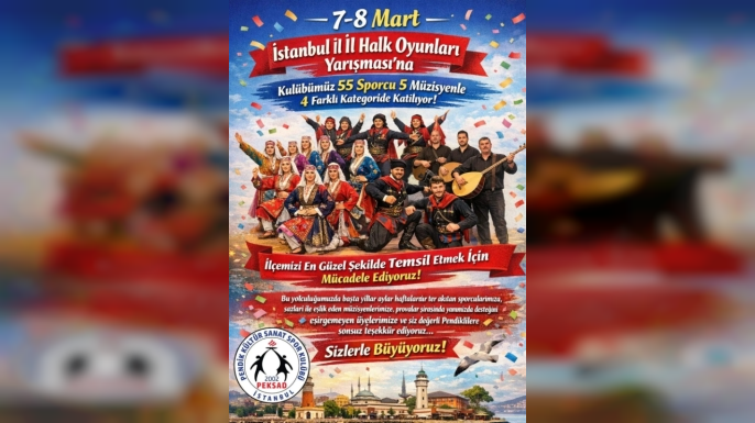 Pendik Kültür Sanat Spor Kulübü Derneği (PEKSAD), 7–8 Mart 2026 tarihlerinde gerçekleştirilecek Türkiye Halk Oyunları Federasyonu (THOF) İstanbul İl Halk Oyunları Yarışması’nda Pendik’i temsil edecek. Yarışma, Maltepe Müzahir Sille Spor Salonu’nda düzenlenecek.