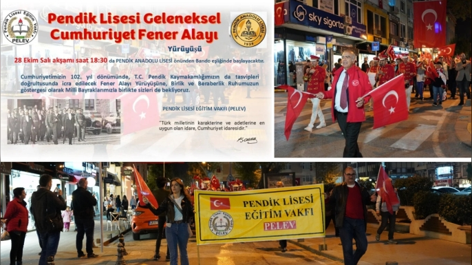 Cumhuriyetimizin 102. yılı dolayısıyla, Pendik Lisesi Eğitim Vakfı (PELEV) tarafından organize edilen Geleneksel Cumhuriyet Fener Alayı Yürüyüşü, bu yıl da büyük bir coşkuyla gerçekleştirilecek.