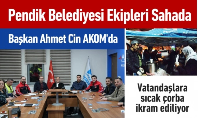 Pendik Belediye Başkanı Ahmet Cin deprem sonrası gelişmeleri Güllübağlar'da bulunan Afet Koordinasyon Merkezi'nde (AKOM) takip ediyor. Tüm vatandaşlara geçmiş olsun dileklerini sunan Başkan Ahmet Cin: "Başta PEAK olmak üzere tüm ekiplerimizle koordinasyon halinde çalışmalarımızı sürdürüyoruz." dedi.