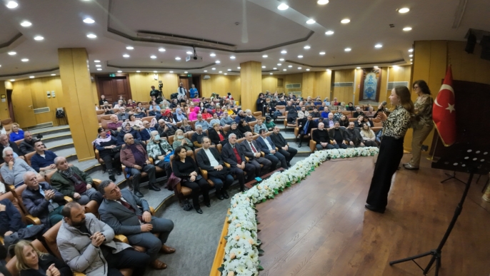 Dinleti, Emekli Öğretmen Asuman Karaaslan’ın “Öğretmen Andı”nı, yine Emekli Öğretmen Sevinç Uzun’un Arif Nihat Asya imzalı Bayrak şiirini okumasıyla başladı.