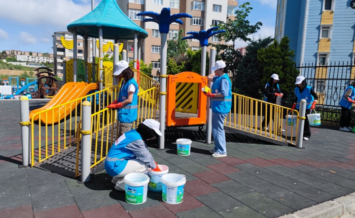 Etkinliğe katılan öğrenciler, büyük bir özveriyle parktaki çöpleri topladı, bankları ve oyun alanlarını temizledi.