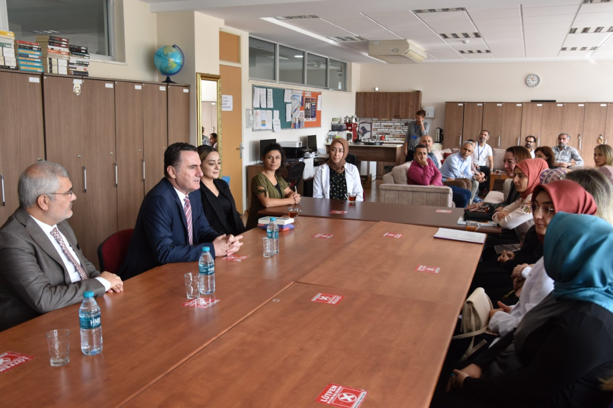 Öğretmenler Odasında Öğretmenler ile buluşan Pendik Kaymakamı Mehmet Yıldız ve İlçe Milli Eğitim Müdürümü Aytekin Yılmaz öğretmenle ile sohbet etti.