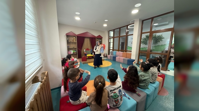 Tatil boyunca düzenlenen programlarda çocuklar, sanat atölyelerinde fotoğraf çerçevesi yapımı gibi yaratıcı çalışmalar gerçekleştirirken, masal odasında eğitmenler eşliğinde hikâyeler dinliyor.