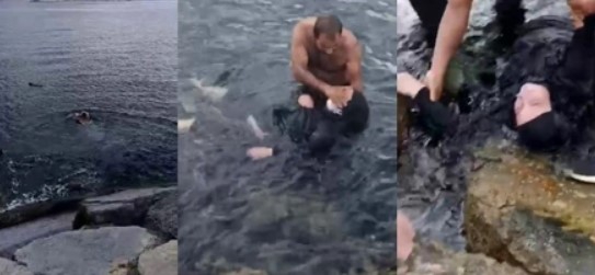 O anlar, cep telefonu kamerasıyla kaydedilirken, boğulma tehlikesi geçiren kadın sağlık ekipleri tarafından hastaneye kaldırıldı.