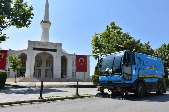 Belediye ekipleri bir yandan kurban satış ve kesim alanlarını denetleyip dezenfeksiyon çalışmalarını sürdürürken diğer yandan da ilçedeki camileri bayram namazına hazırlıyor.