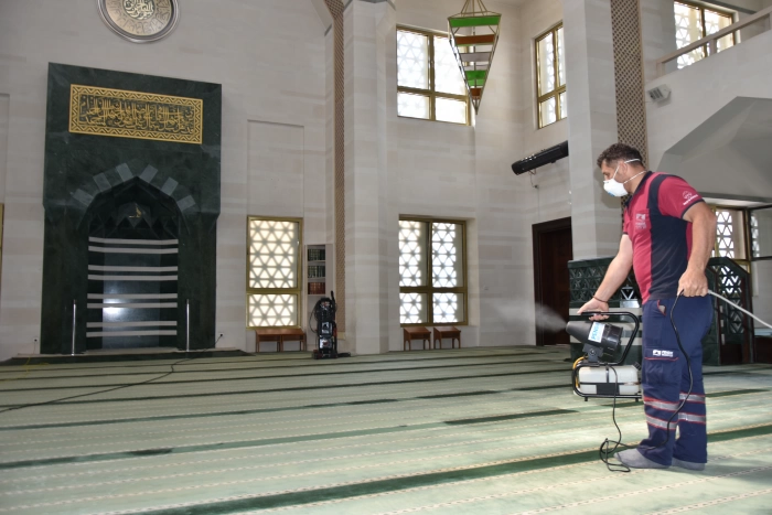 Ekipler, bu cuma günü başlayacak Kurban Bayramı öncesi camilerin iç ve dış bölümlerini dezenfekte etti.