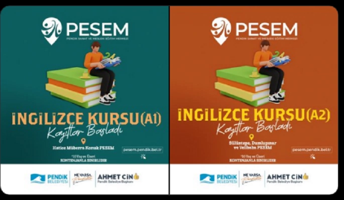 Pendik Sanat ve Mesleki Eğitim Merkezi’nde (PESEM), İngilizce öğrenmek isteyenler için A1 ve A2 seviyelerinde kurslar düzenliyor. Kurslara kayıtlar kontenjanla sınırlıdır. Başvurular http://pesem.pendik.bel.tr web sitesi üzerinden yapılabiliyor.