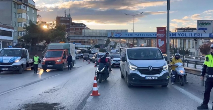 Pendik Ortamahalle mevkiinde sabah saat 06.30 sıralarında iş makinası taşıyan bir kamyonetin devrilmesi sonucu D-100 Karayolu’nda trafik durma noktasına geldi.