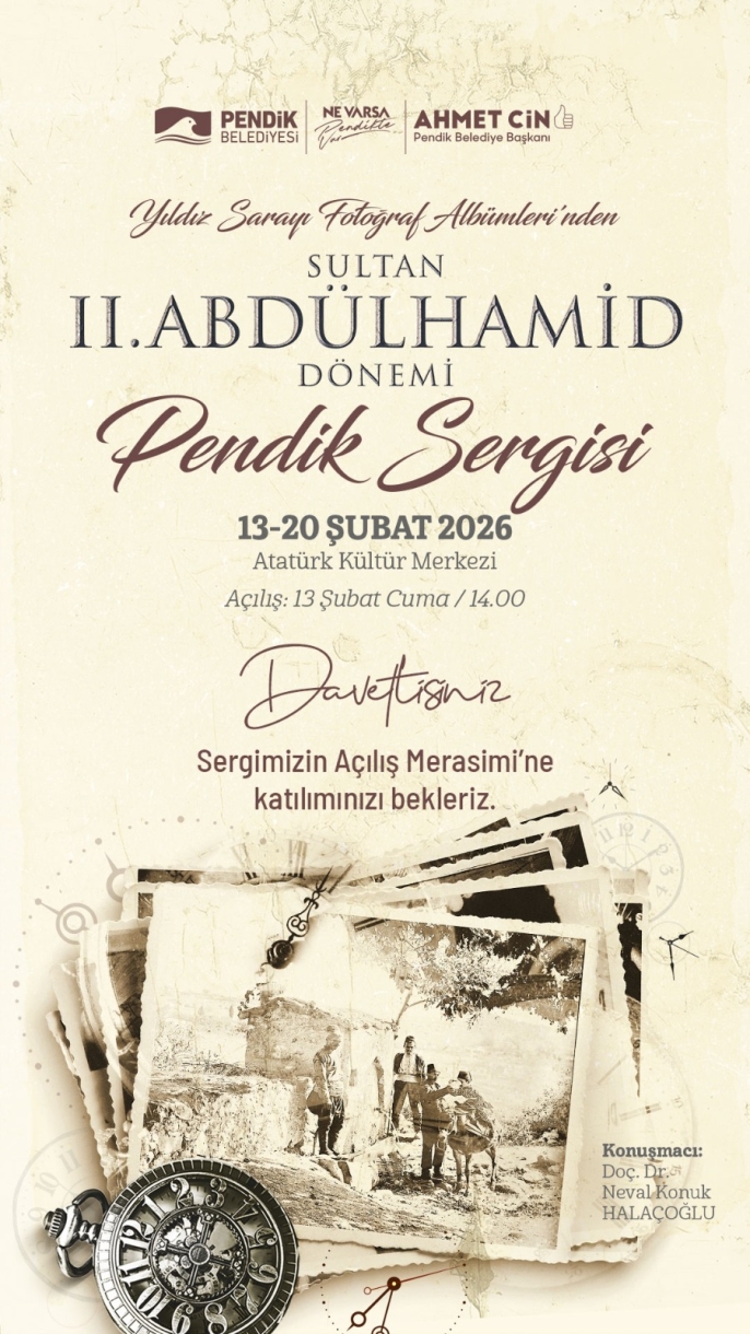 Pendik Belediyesi tarafından düzenlenen “Sultan II. Abdülhamid Dönemi Fotoğraf Sergisi”nin açılışı, 13 Şubat 2026 Cuma günü saat 14.00’te gerçekleştirilecek. Sergi kapsamında düzenlenecek konferansta Doç. Dr. Neval Konuk Halaçoğlu konuşmacı olarak yer alacak; programın ardından kitap imza günü düzenlenecek.