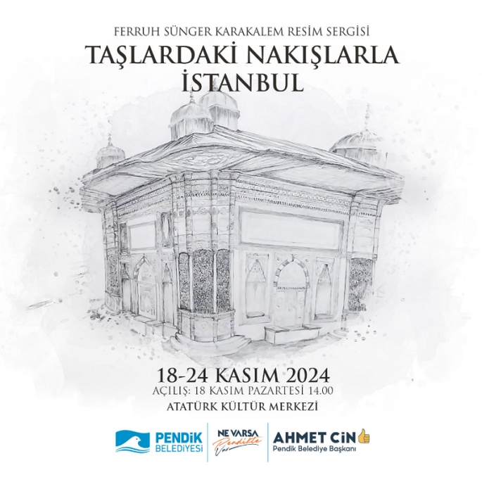 Ferruh Sünger'in birbirinden etkileyici karakalem resimlerinden oluşan "Taşlardaki Nakışlarla İstanbul" sergisi, 18-24 Kasım tarihleri arasında Pendik Atatürk Kültür Merkezi'nde sanatseverlerle buluşacak.