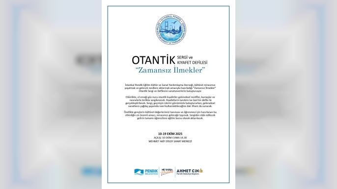 İstanbul Pendik Eğitim Kültür ve Sanat Yardımlaşma Derneği tarafından düzenlenen “Zamansız İlmekler” Otantik Sergi ve Kıyafet Defilesi, 10 Ekim Cuma günü saat 14.30’da Mehmet Akif Ersoy Sanat Merkezi’nde gerçekleştirilecek açılış töreniyle sanatseverlerle buluşacak. Etkinlik, 19 Ekim 2025 tarihine kadar ziyaretçilerini ağırlayacak.