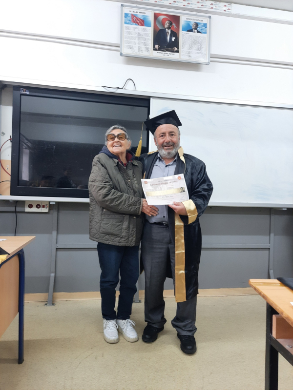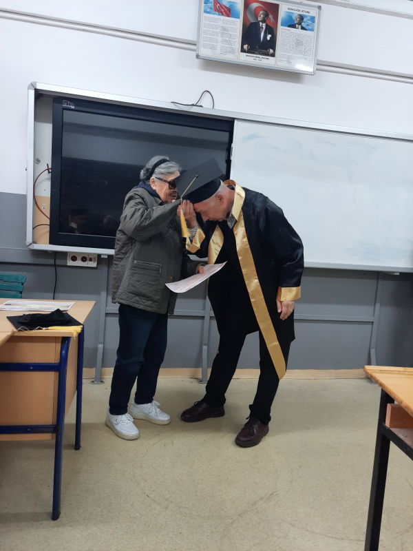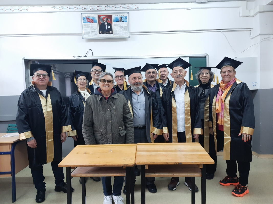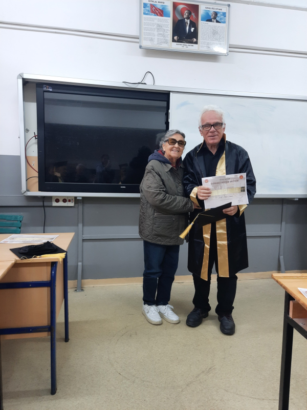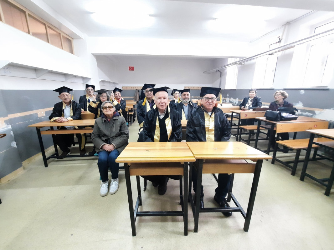 50.yıl mezunları daha sonra keplerini giyip fırlattı. Okulumuzun emekli edebiyat öğretmenlerinden Olcay Köprücü öğrencilere belgelerini takdim ettikten sonra toplu fotoğraf çekimi ile etkinlik sona erdi.