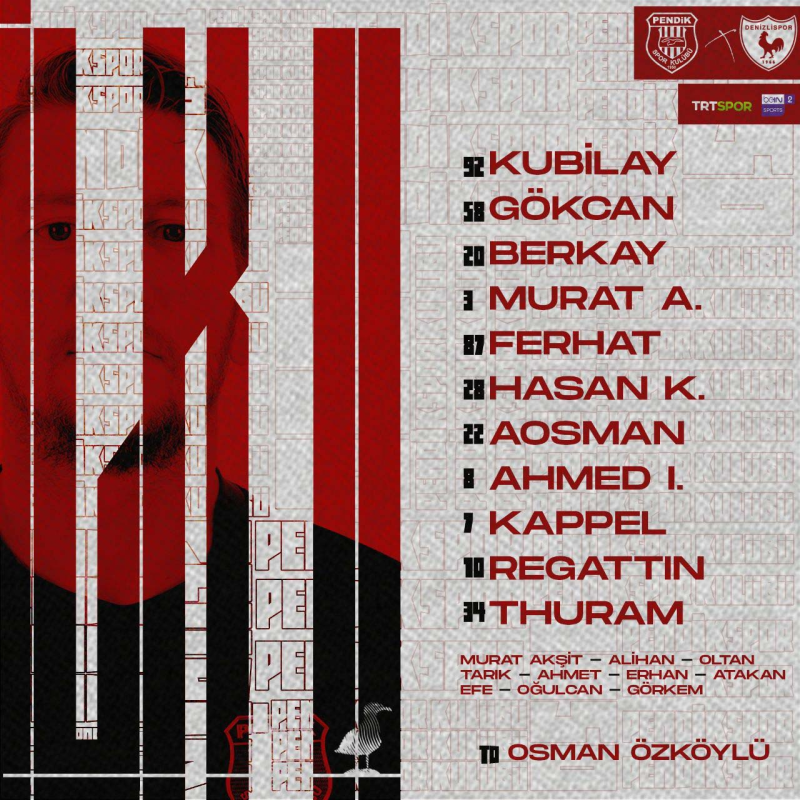 85. dakikada iki oyuncu değişikliği yapan Pendikspor’da, Kappel’in yerine Oğulcan Çağlayan, Thuram’ın yerine Görkem Bitin oyuna dahil oldu.
