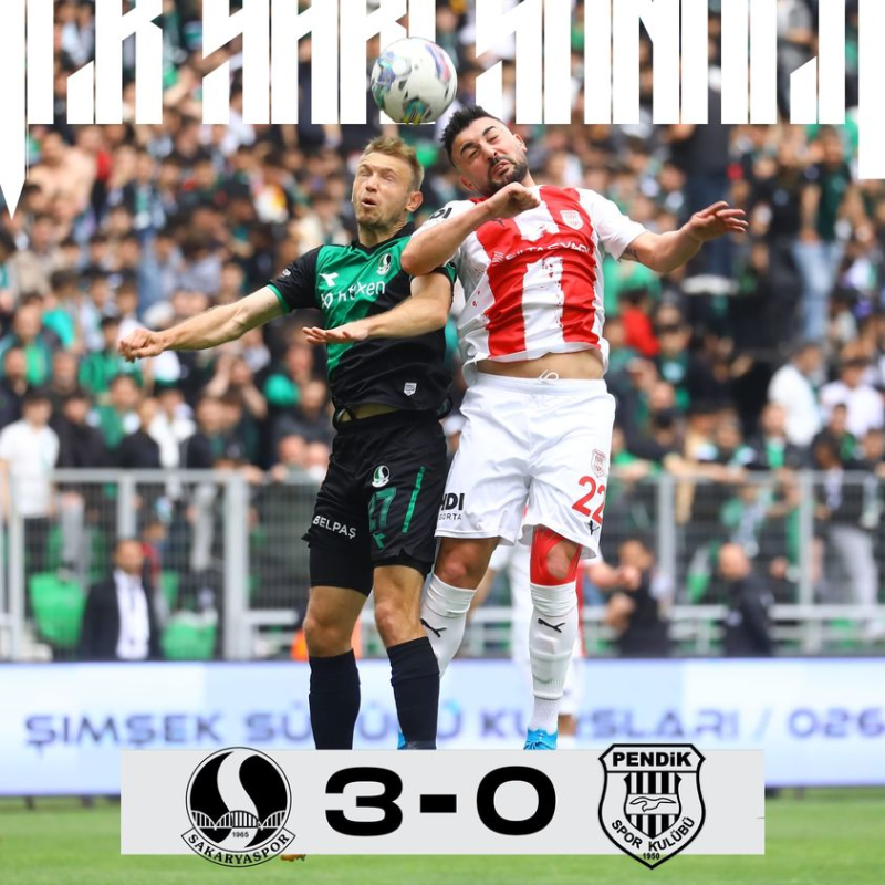 Spor Toto 1. Lig 36. hafta müsabakasında Pendikspor, 3-0 geriye düştüğü Sakaryaspor müsabakasında skoru 3-2’ye getirse de, galip gelmeyi başaramadı. Maçın uzatma dakikalarında Pendikspor’un bir topu da direkten döndü.