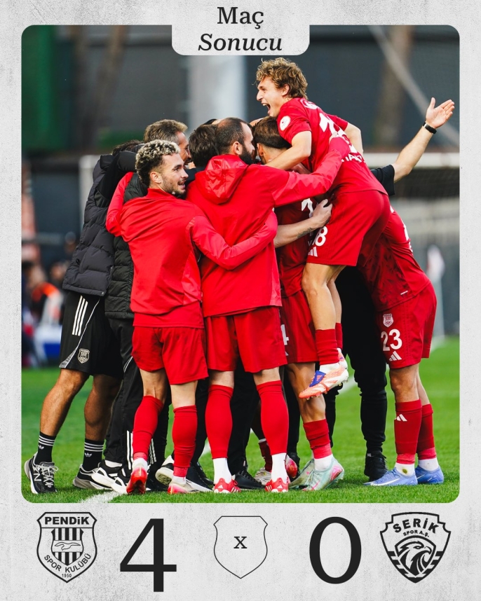 Pendikspor’un gollerini 27. dakikada Mallik Wilks, 47. dakikada Clarke-Harris, 59. dakikada Gökhan Altıparmak (kendi kalesine) ve 90+2. dakikada Thuram kaydetti.