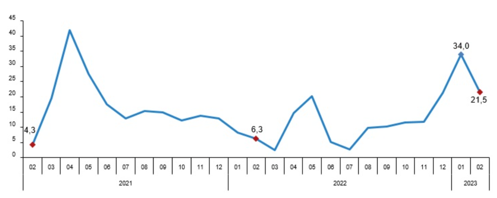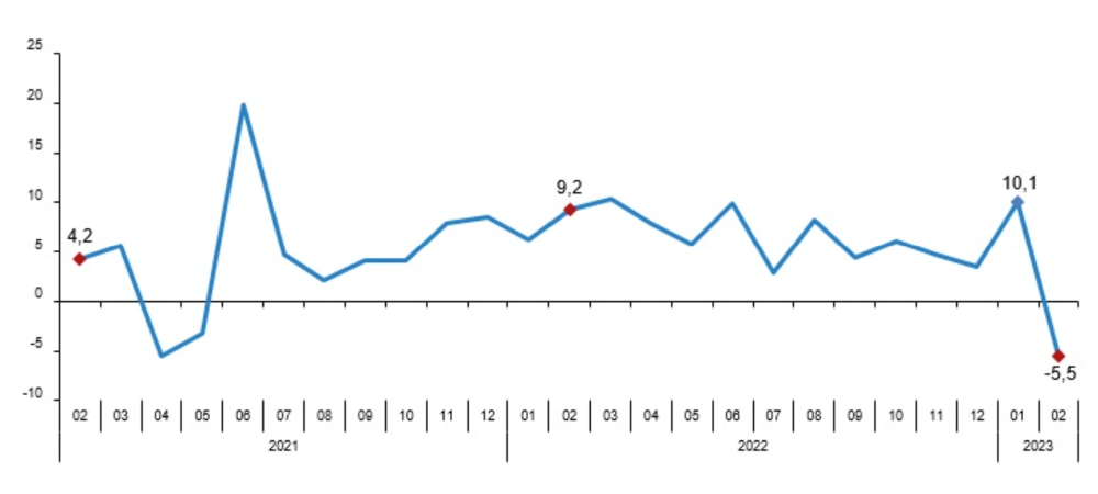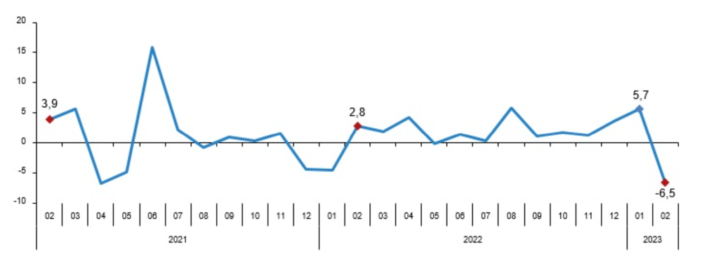 Perakende satış hacmi aylık değişim oranı (%), Şubat 2023