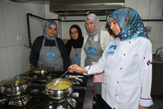 Eğitimler, PESEM kapsamında Çamlık Kütüphanesi ve Sanat Akademisi mutfağında gerçekleştiriliyor.