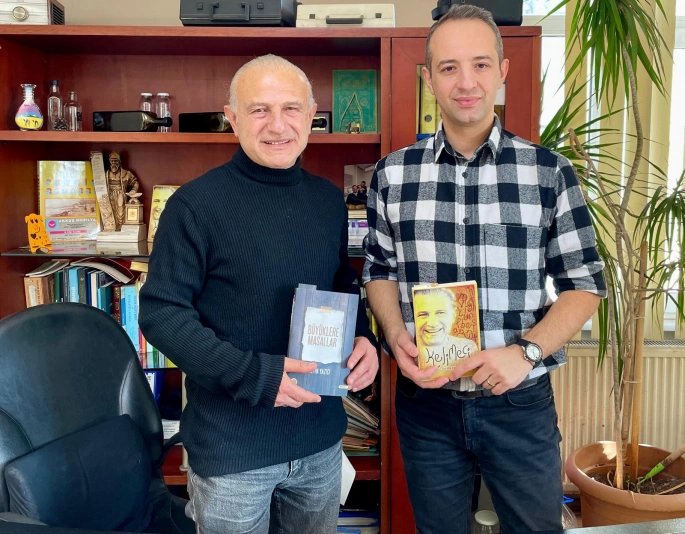 Yazıcı ziyaret kapsamında, son yayınlanan ‘Kelimeci’ adlı şiir kitabını ve ‘Büyüklere Masallar’ deneme kitabını Yılmaz’a imzaladı.