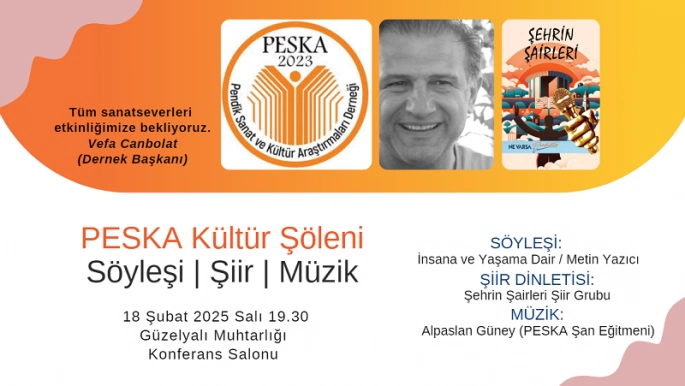 Sunumunu Melike Altıparmak’ın yapacağı program kapsamında; Gazeteci Yazar Metin Yazıcı ‘İnsana ve Yaşama Dair’ başlıklı bir söyleşi verecek. Söyleşinin ardından Şehrin Şairleri Şiir Grubu bir dinleti sunacak.