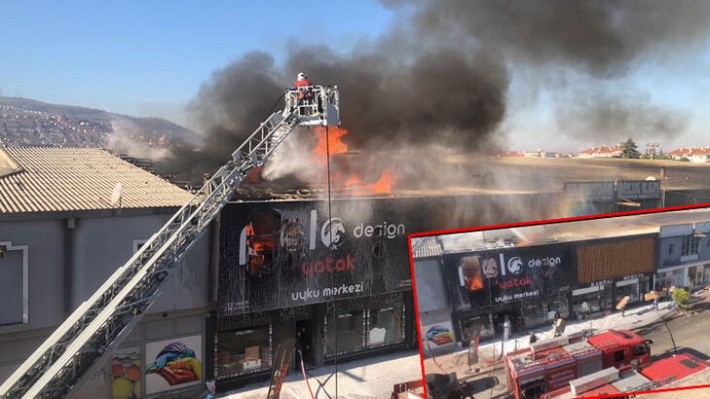 Mobilyacılar Çarşısı’nda bulunan 2 katlı yatak satış mağazasında, öğle saatlerinde çıkan yangın, kısa sürede büyüdü.