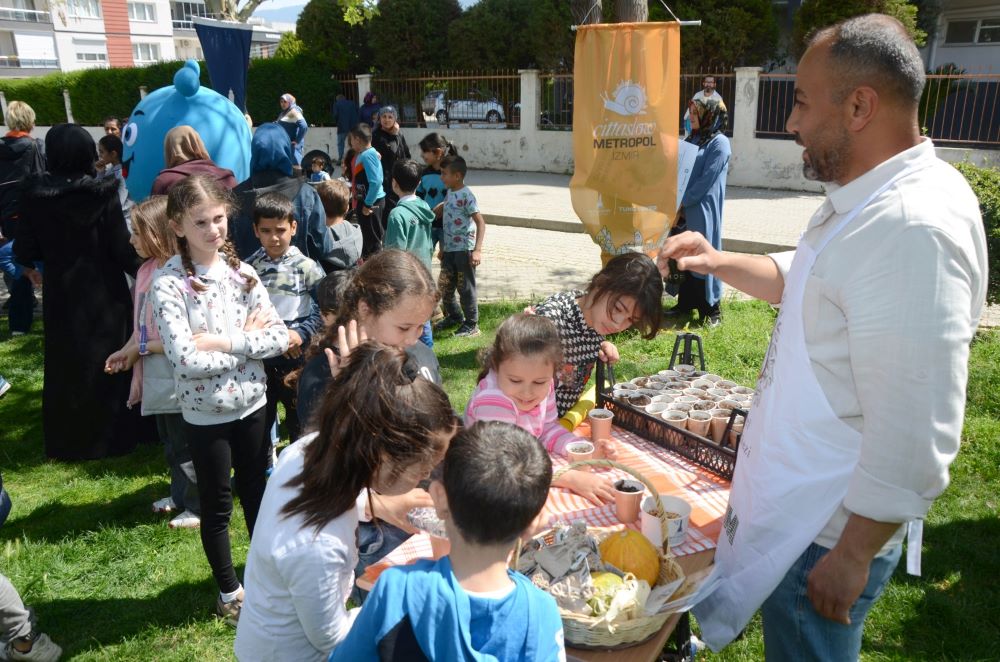 Dünyanın birinci Cittaslow Metropol pilot kenti İzmir’de “Sakin Mahalle” programı kapsamında düzenlenen aktifliğe mahalle sakinleri büyük ilgi gösterdi. Vazifeliler çocuklara atalık tohumları anlattı, tohumların nasıl ekileceği ve sulanacağı konusunda bilgi verdi. Çim İnsan Atölyesi’nde tohumları toprağa eken çocuklar tohumların gelecekte nasıl meyve vereceğini de uygulamalı olarak öğrendi. Aktiflikte çocuklara su tasarrufunun kıymeti de anlatıldı.