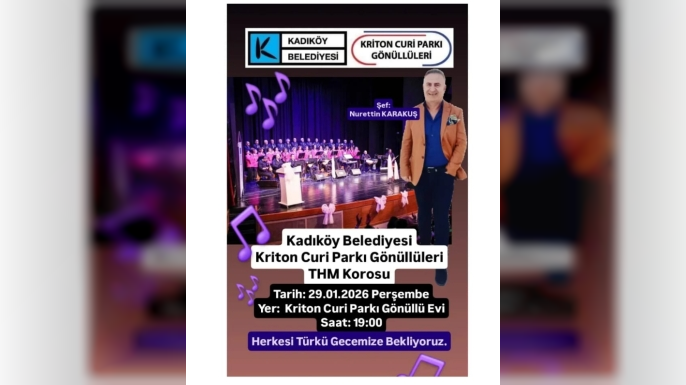 Türk Halk Müziği’nin sevilen eserlerinin seslendirileceği konser, 29 Ocak 2026 Perşembe günü saat 19.00’da, Kriton Curi Parkı Gönüllü Evinde gerçekleştirilecek. Kadıköy Belediyesi ve Kriton Curi Parkı Gönüllüleri iş birliğiyle düzenlenen etkinlikte, koro üyeleri izleyicilere unutulmaz bir müzik ziyafeti sunacak.
