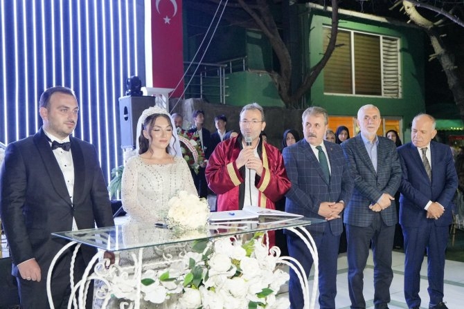 Nikâh sonrası evlilik cüzdanını Başkan Ahmet Cin, Mustafa Destici’ye takdim etti. Destici, kısa selamlama konuşmasında çifte ömür boyu mutluluklar diledi ve evlilik cüzdanını gelin hanıma verdi.