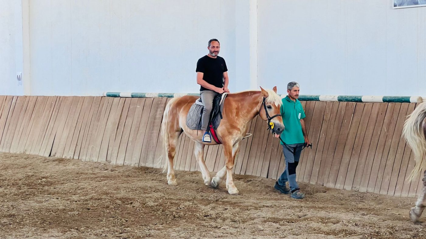 Olimpik Binicilik Merkezi’nde ata binen gazeteciler, hem hayvanları sevdi hem de heyecanlı dakikalar yaşadı.