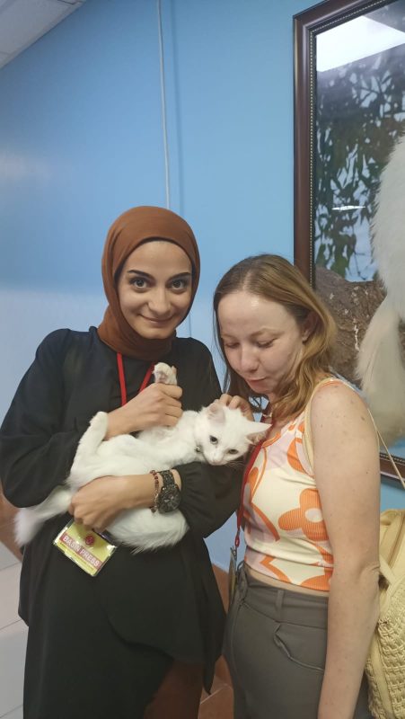 Van Kedi Villasını ziyaret eden basın mensupları, kedileri severek oyunlar oynadılar. Farklı göz rengine sahip olan Van kedileri ile fotoğraf çektirdiler.
