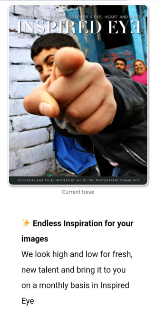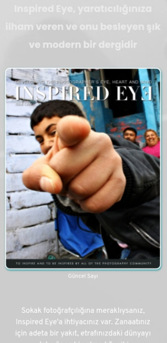 Son olarak Inspired E dergisinin Eylül sayısının kapağında bir fotoğrafıyla yer alan sanatçının, dergide 12 fotoğrafına daha yer verildi ve kendisiyle 30 soruluk kapsamlı bir röportaj gerçekleştirildi.