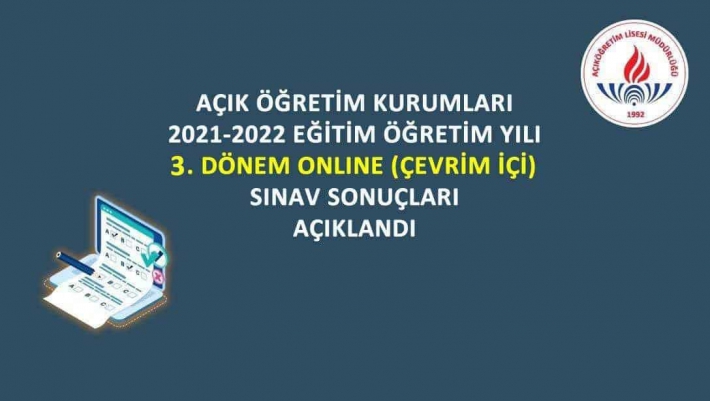 AÇIK ÖĞRETİM KURUMLARI 2021-2022 EĞİTİM ÖĞRETİM YILI 3. DÖNEM ONLİNE (ÇEVRİM İÇİ) SINAV SONUÇLARI AÇIKLANMIŞTIR.