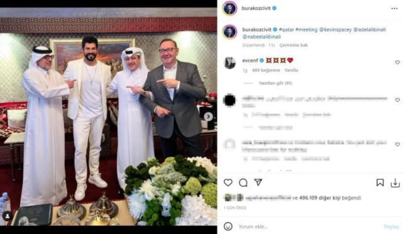 Ünlü oyuncu Burak Özçivit, Adelali Binali’nin davetlisi olarak gittiği Katar’da bir çocuk oyuncuyu 14 yaşındayken istismar ettiği başta olmak üzere adı birçok istismar olayına karışan Kevin Spacey ile bir araya geldi.