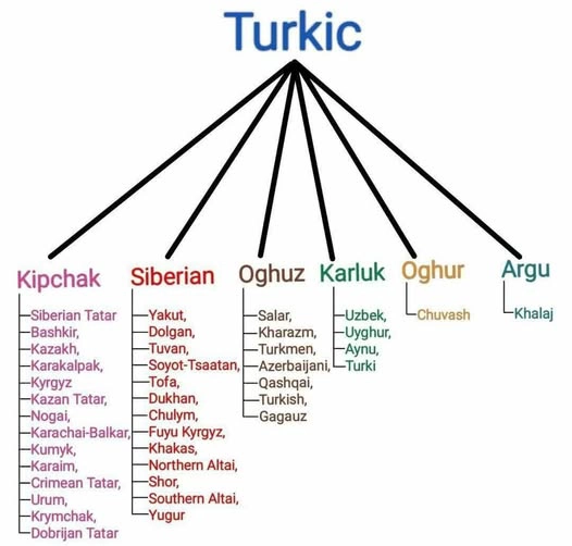 Tüm Türk dilleri fonoloji, morfoloji ve söz diziminde birbirine yakın benzerlikler göstermektedir, ancak Çuvaş ve Sakha (Yakut) diğerlerinden oldukça farklıdır. Altaic ailesinin Türk kolu, dil sayısı ve konuşmacı sayısı bakımından üç şubenin en büyüğüdür. Çoğunlukla coğrafi konumlarına göre beş gruba ayrılır. 50.000'den fazla konuşan olan diller aşağıda listelenmiştir.