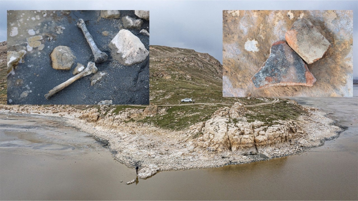 Van‘ın Erciş ilçesinde gölün çekilmesi sonucu Urartular dönemine ait açık hava tapınma alanında üç niş, kayaya oyulmuş iskele ve anakaya zeminine kazılmış mezarlar ortaya çıktı.