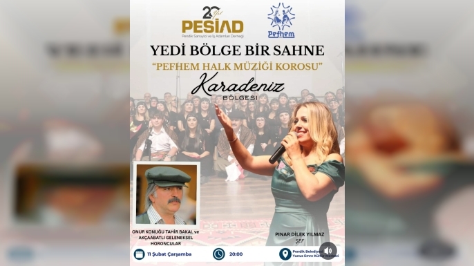 11 Şubat Çarşamba günü saat 20.00’de, Pendik Belediyesi Yunus Emre Kültür Merkezi’nde gerçekleştirilecek konserde, Karadeniz’in coşkulu ve derinlikli türkülerine yer verilecek.