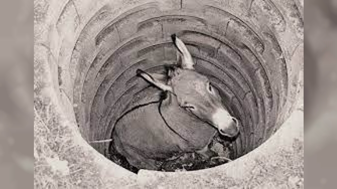 Hayvancık saatlerce acı içinde kıvrandı, bağırdı kendi dilinde. Ayıptır söylemesi, anırdı yani. Sesini duyan sahibi gelip baktı ki vaziyet kötü. Zavallı eşeği kuyunun dibinde melül mahzun bakınıyor. Üstelik yaralanmış. Karşılaştığı bu durumda kendini eşeği kadar zavallı hisseden adamcağız köylüleri yardıma çağırdı.