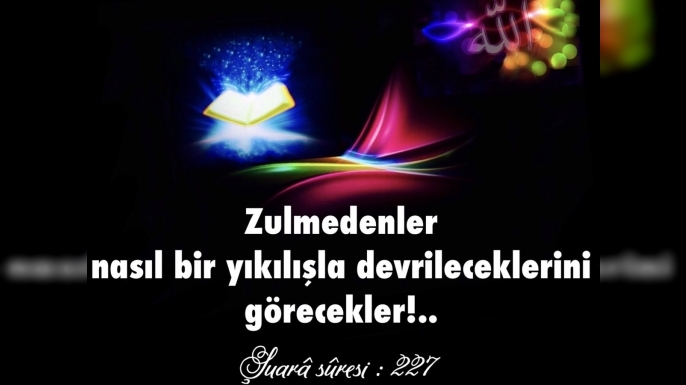 İllâllezîne âmenû ve amilûs sâlihâti ve zekarul lâhe kesîran ve ntasarû min ba'di mâ zulimû ve se ya'le mullezîne zalemû ey mun kaliben yankalibûn(e).