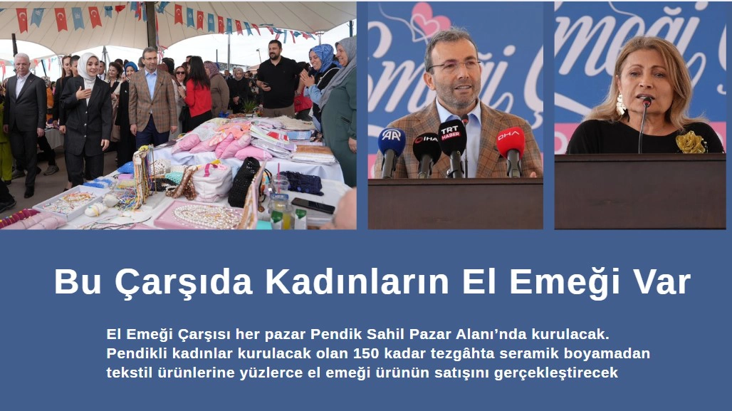 El Emeği Çarşısı her pazar Pendik Sahil Pazar Alanı’nda kurulacak. Pendikli kadınlar kurulacak olan 150 kadar tezgâhta seramik boyamadan tekstil ürünlerine yüzlerce el emeği ürünün satışını gerçekleştirecek.